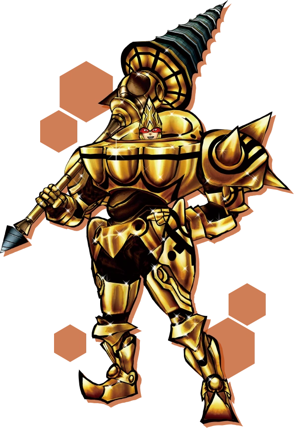 Aunque conserva el aspecto fuertemente blindado que tenía su antiguo avatar, Piros the 3rd está vestido con una armadura dorada esta vez, y agrega una visera roja, lo que lo hace ver aún más ridículo que su personaje en The World.