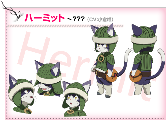 Hermit appears as a chibi-fied and gender-swapped version of Mia from the original games, though with a hat, which Mia did not wear. He carries a small black stick of unknown origin, which is apparently a cheat item with access to a number of system commands.