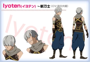 - Iyoten is young man with silver hair covering his eyes and an unsettling grin on his face.