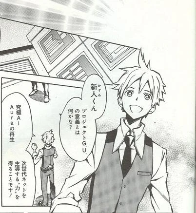 After Aura mysteriously vanished from The World, CC Corp hired Jun Bansyoya to be one of the leads of Project G.U. Along with the other lead, Jyotaro Amagi, he began researching the events of the Morganna Incident for clues that could lead to finding Aura. Eventually he and Jyotaro created the R.A. Plan, which was designed to create a new ultimate A.I. under the control of CC Corp.