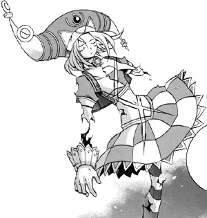 Saku is very aggressive, intense, and prone to holding grudges. Thinking of herself before others, she'll often do things like spend money painstakingly gathered by her brother without permission. She puts her adoration for Endrance over everything else, antagonizing anyone who dares to approach him. Saku, however, is very protective when it comes to Bo.