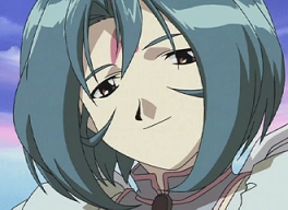Subaru is a petite, blue-haired woman who wears a light blue dress. She has small, feathery wings that sprout out of her back, and has a red wave tattoo on her forehead. She possesses a regal-looking axe, but rarely uses it in combat, preferring to hold it as a type of scepter. In the episode Recollection, when she reminisces the early days of the Crimson Knights, she is shown to have a pink dress.